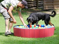An unserem diesjährigen Fun Pokal gingen 20 Hunde an den Start. Im Vordergrund statt wie immer der Spaß und das Geschick des Hundeführers den Parcour so schnell wie möglich mit seinem Hund zu bewältigen. Eine Herausfoderung war dieses Jahr unsere Hundepool mit den schwimmenden Bällen, wo die meisten Hunde etwas skeptisch waren.